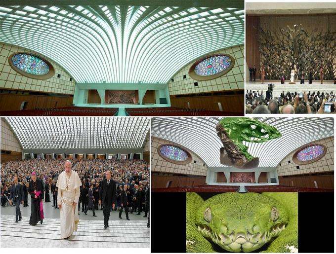 The False Prophet will speak for satan. In other words, the False Prophet will be the serpent’s mouthpiece as he promotes the Antichrist, satan’s puppet. The Pope sits in and speaks out from between the fangs of the mouth of a giant serpent image structure building; If you haven’t seen it yet, here’s the Paul VI Audience Hall.