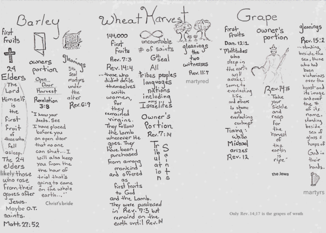 Yet, Jesus didn’t specify that we’ll need to predict, the exact calendrical day of each harvest in advance. And, regarding the hour? It seems that He meant we should be aware of ‘the hour’ when He comes upon us, to gather us to Himself. In other words, if we ignore the words spoken into our spirit “come up here” or the shout of the archangel and the trumpet blow of God, we’ll miss out on that harvest because we will have been living for the world, not focused on Him. I think He commanded us ‘to see the day approaching’ so that we’ll be continuously focused on Him, not on the world, so that we won’t miss the hour. But I could be wrong; So please don’t let me discourage anyone who’s being led by the Holy Spirit to know the exact hour in advance.
