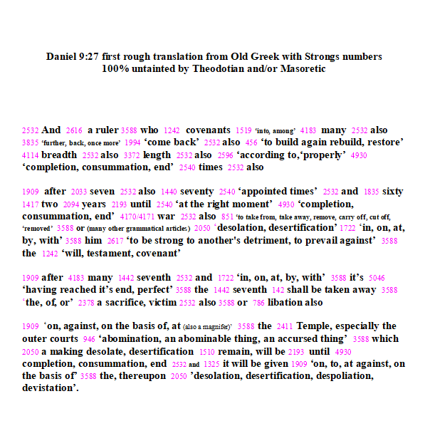 This was my second draft translation of Daniel 9:27. I used Strong’s for the basic foundation.